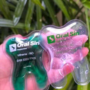 Bolsa de gelo em formato de dente, personalizada com sua logo.
