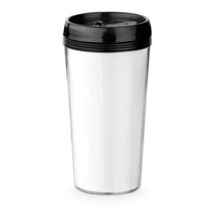 Copo de viagem personalizado 520ml com corpo duplo, tampa com sistema de abertura e fecho fácil.