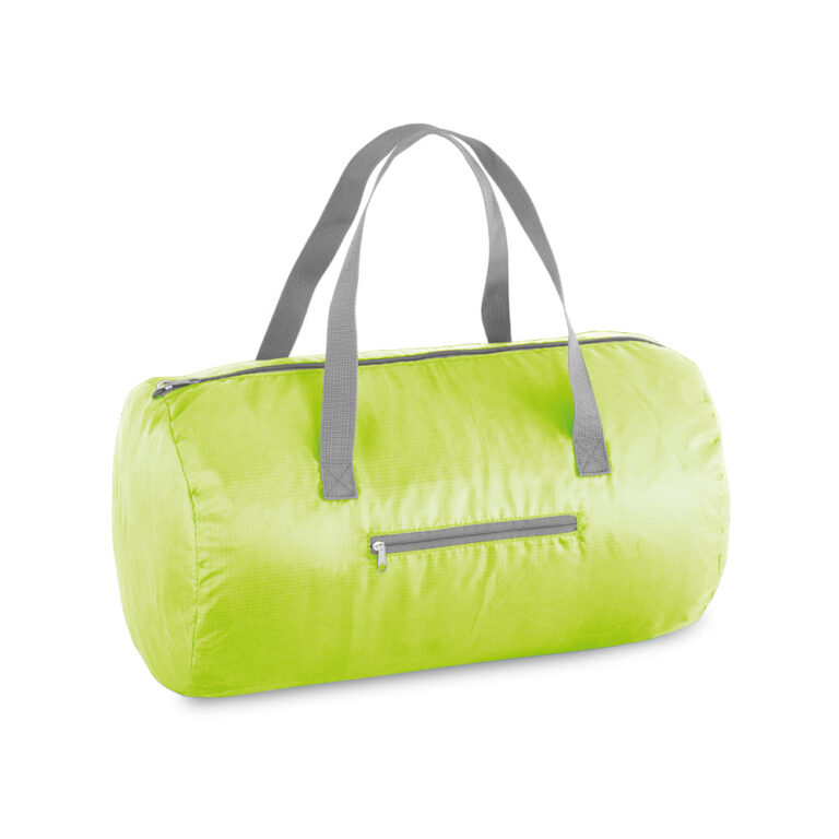 Sacola esportiva dobrável em 210D ripstop com bolso frontal. Fornecida desdobrada. Capacidade até 17 L