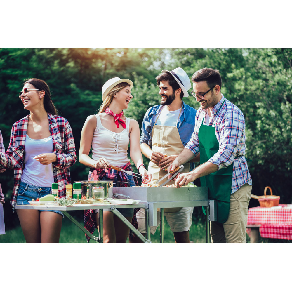 ALIOLI KING. Kit churrasco em caixa kraft com 4 peças em aço inox e bambu