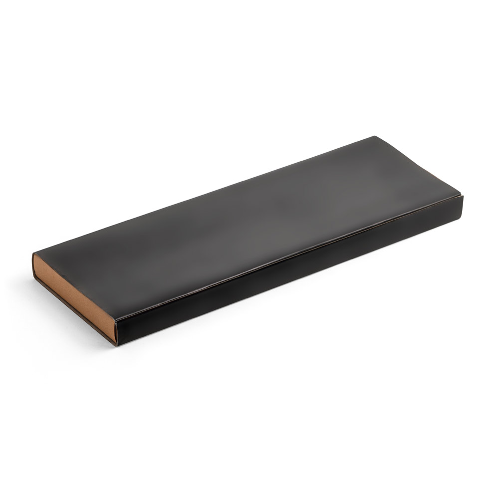 Kit churrasco em caixa kraft de papel reciclado. Composto por 2 utensílios em aço inox e bambu: faca chefe e garfo. Certificação EU Food Grade. A cor e o resultado da impressão nos materiais naturais pode variar entre produtos. Caixa: 340 x 115 x 25 mm