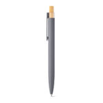 ANTON. Esferográfica com corpo em alumínio 100% reciclado com ponteira em bambu e escrita em azul