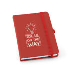 Caderno A6 de capa dura com 80 folhas pautadas.