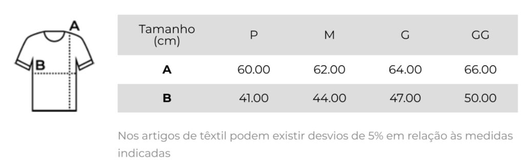 - Disponível em diversos tamanhos: P, M, G e GG para atender a todos os gostos.