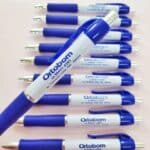 Caneta Caneta Plástica com corpo resistente, tampa ventilada e com ponta média para escrita suave.