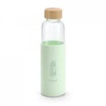 Squeeze de Vidro 600ml com tampa bambu, capa silicone e certificado EU Food Grade.