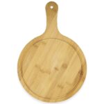 Tábua de bambu com canaleta e cabo, sustentável e resistente. Ideal para cortes e servir.