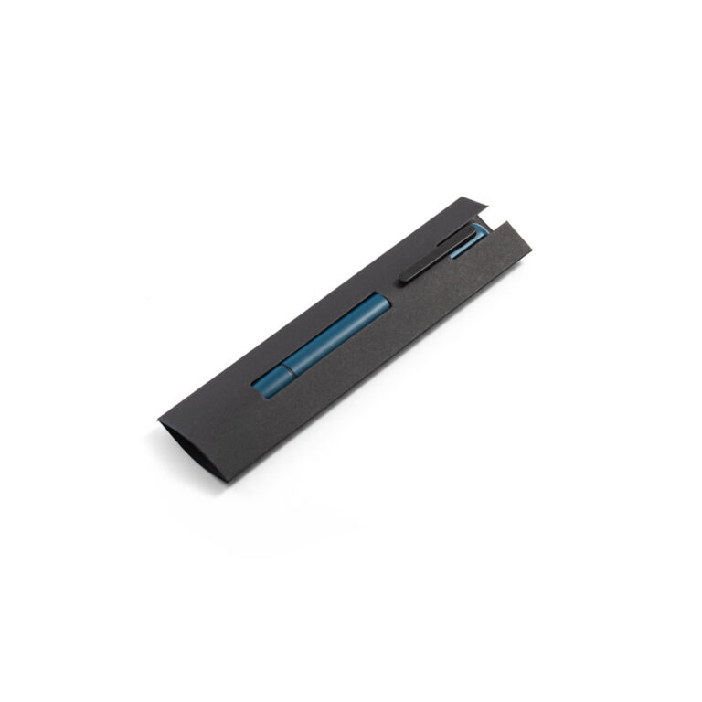 Esferográfica em alumínio 94% reciclado, com escrita em azul até 1,5 km. Quando personalizado no clipe permite que, ao ser rodado, ilumine o seu logotipo ou personalização. Fornecida em bolsa de oferta