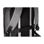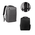 Mochila para notebook em 300D de alta densidade com 2 divisórias almofadadas para notebook até 15,6″ e tablet 10,5″ e diversos bolsos interiores. Tem ainda bolso frontal, 2 bolsos laterais e banda para transporte em trolley. Parte posterior e alças são almofadadas. Capacidade até 14 L